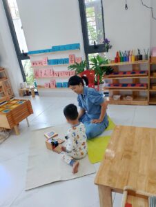 Lớp học trộn độ tuổi tạo điều kiện để trẻ lớn làm “người dẫn dắt”, trẻ nhỏ học hỏi qua quan sát – một cơ chế học tự nhiên và hiệu quả. Giáo viên đóng vai trò người quan sát – người hướng dẫn, can thiệp đúng lúc để khơi mở tiềm năng, thay vì áp đặt hay thúc ép. Trẻ hình thành tính độc lập, khả năng tập trung, kỷ luật nội tâm và sự tự tin, những năng lực cốt lõi cho hành trình học tập dài hạn.