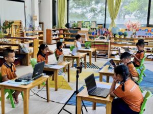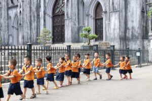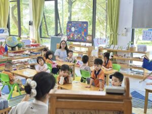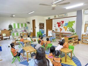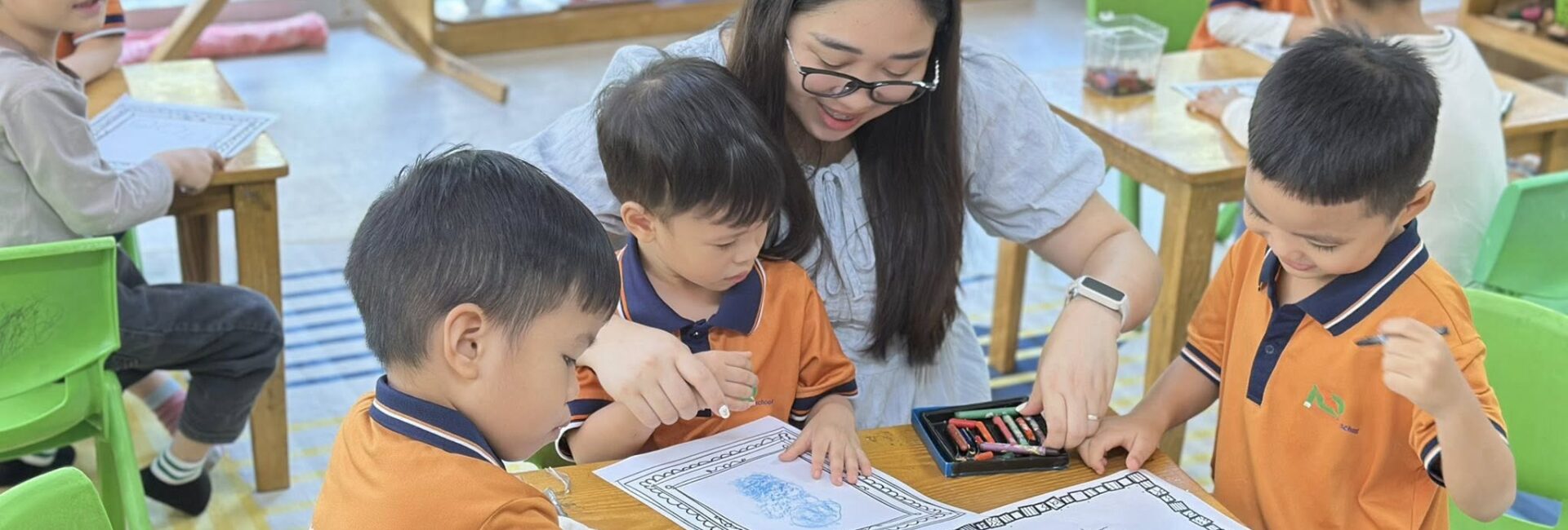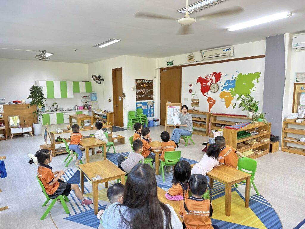 Nhà trường chú trọng xây dựng môi trường “yêu thương đúng cách” – nơi trẻ được lắng nghe, được hướng dẫn nhưng không bị áp đặt. Lớp học Montessori trộn độ tuổi tạo cơ hội cho trẻ lớn hỗ trợ trẻ nhỏ, hình thành tinh thần trách nhiệm, kỹ năng xã hội và sự tự tin.