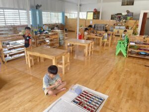 Là Lá La Montessori sở hữu không gian học tập được thiết kế theo chuẩn Montessori quốc tế, nơi mọi chi tiết từ ánh sáng, màu sắc đến cách bố trí học cụ đều phục vụ cho sự phát triển tự nhiên của trẻ. Các lớp học được sắp xếp mở, không gian rộng rãi, nhiều ánh sáng tự nhiên, khuyến khích sự tự do và tập trung. Học cụ tại trường đều là học cụ chuẩn Montessori nhập khẩu, giúp trẻ trải nghiệm đa giác quan và phát triển các kỹ năng vận động tinh, thô.