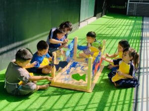 Nhà trường cũng duy trì tỷ lệ giáo viên/trẻ hợp lý, đảm bảo mỗi trẻ đều được quan tâm và hỗ trợ cá nhân hóa. Ngoài ra, nhà trường thường xuyên tổ chức chương trình đào tạo nội bộ và hợp tác chuyên môn, nhằm nâng cao năng lực sư phạm và cập nhật xu hướng giáo dục hiện đại.