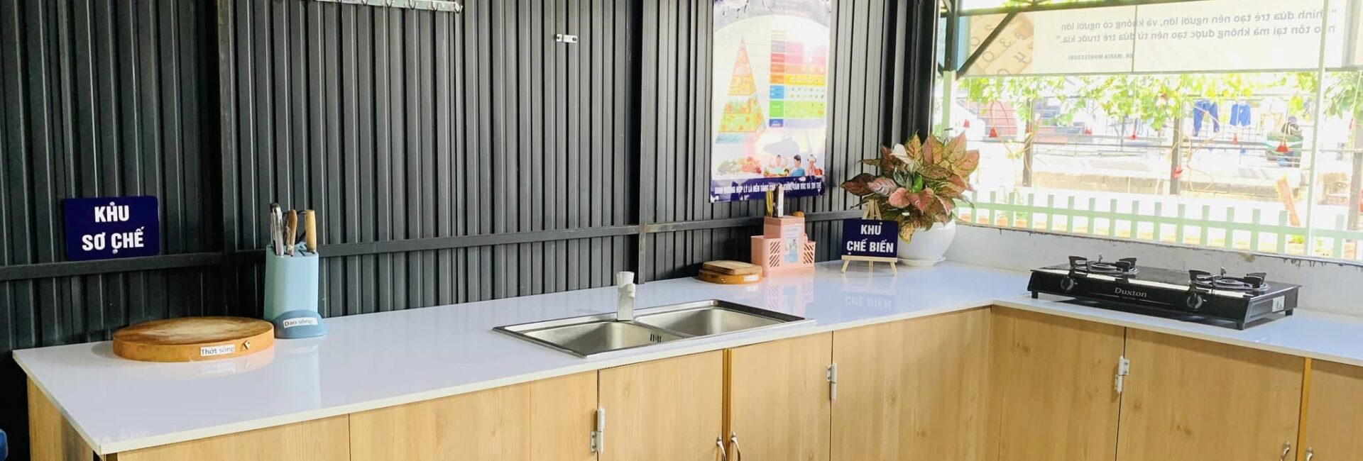 Tất cả bữa ăn đều được chế biến tại bếp riêng của trường, tuân thủ nghiêm ngặt quy trình an toàn vệ sinh thực phẩm. Trẻ được hướng dẫn ăn uống độc lập, biết tự phục vụ và cảm nhận hương vị, đúng tinh thần “tôn trọng trẻ trong từng chi tiết nhỏ”.