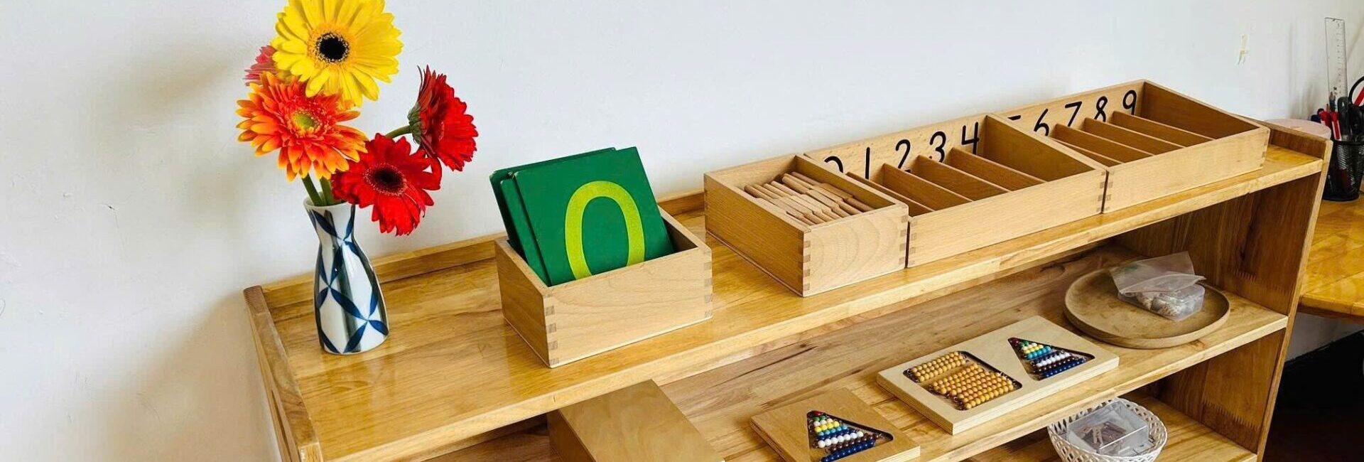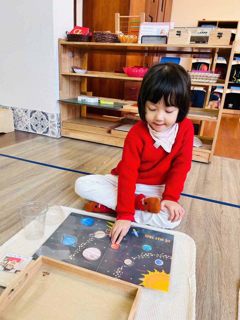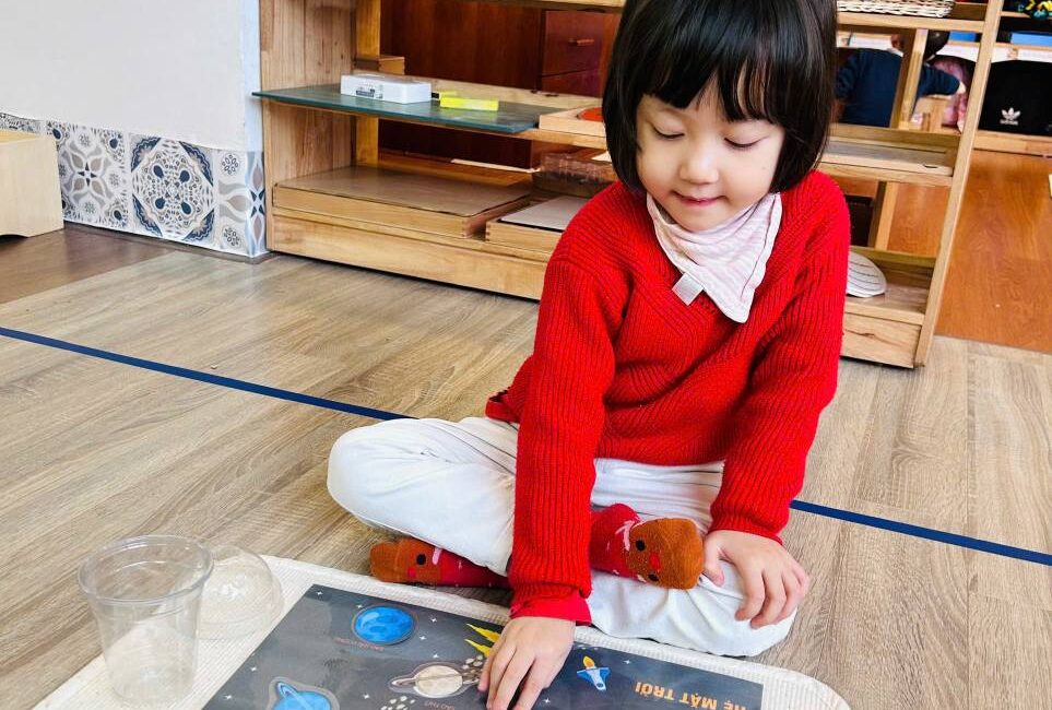 - Mỗi lớp đều trang bị đầy đủ giáo cụ Montessori chuẩn, phù hợp từng giai đoạn nhạy cảm và khả năng phát triển trí tuệ của trẻ.