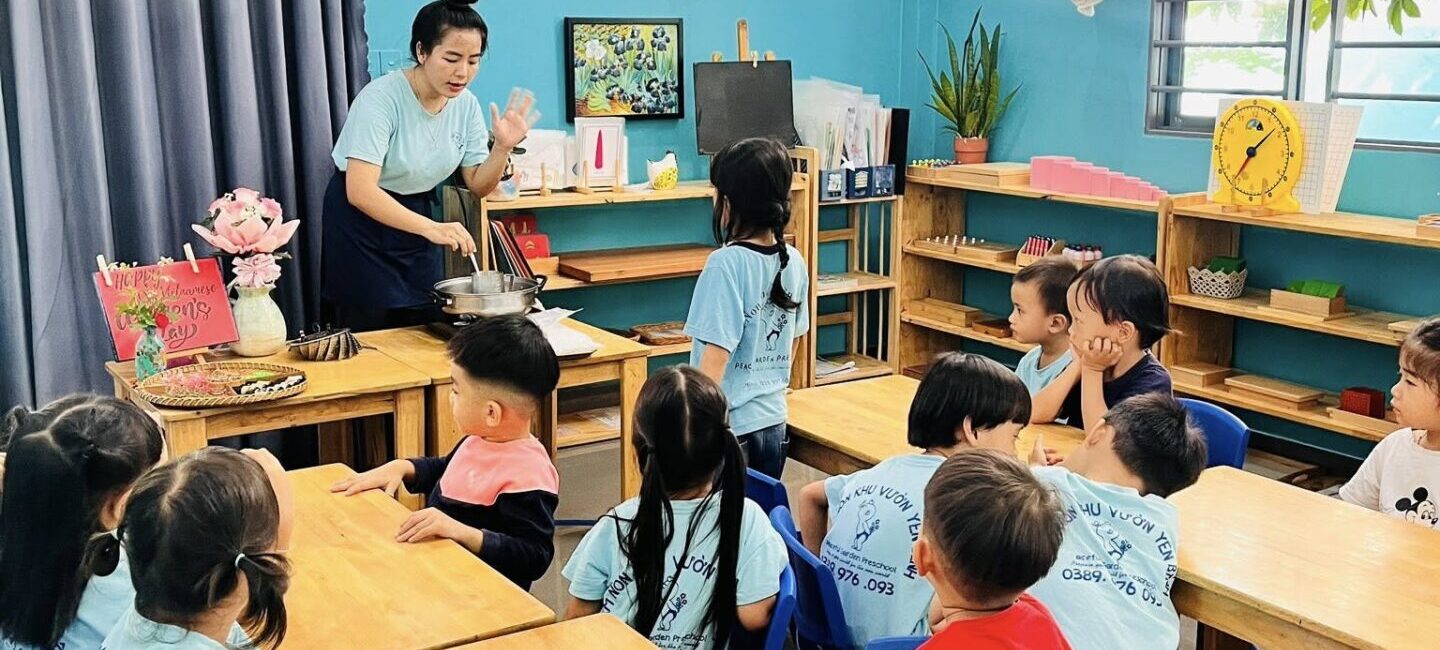 100% giáo viên tại Peaceful Garden Preschool đều có chuyên môn Sư phạm Mầm non, được đào tạo bài bản và am hiểu tâm lý trẻ, đặc biệt là phương pháp Montessori.