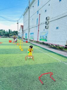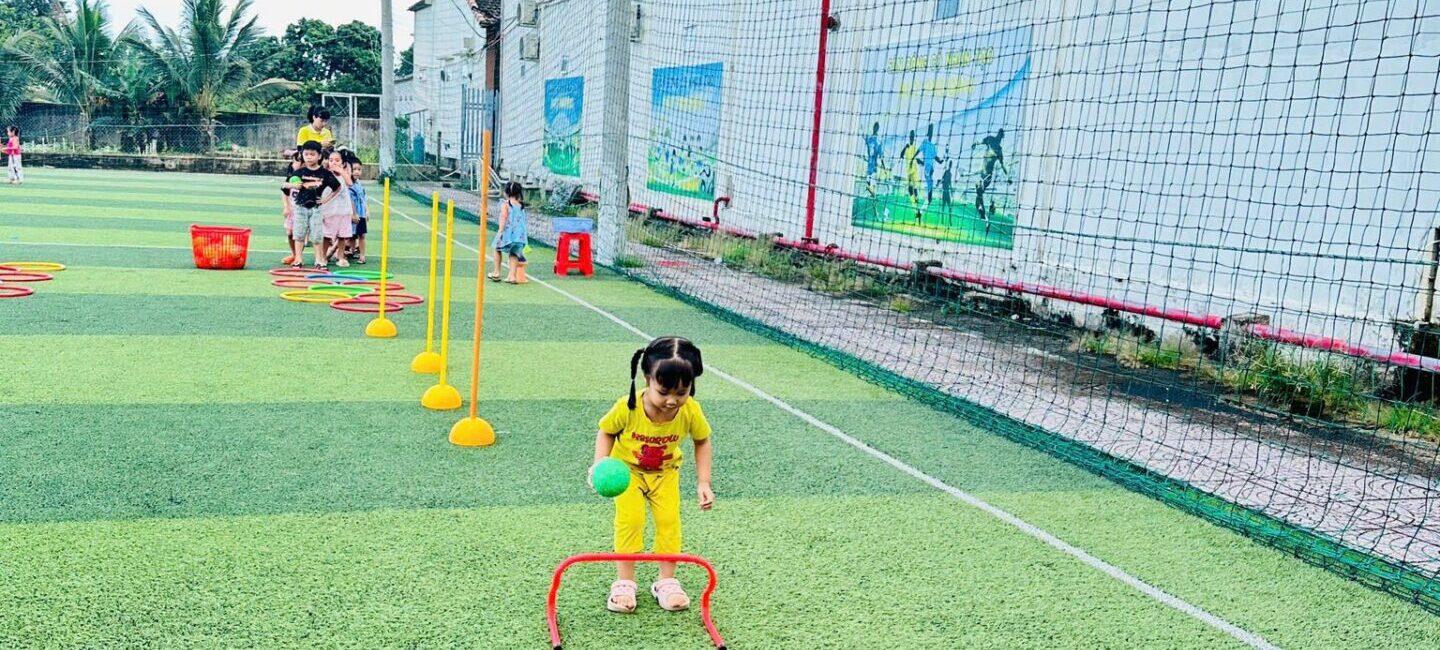 • Không gian rèn luyện vận động: Sự hiện diện của bể bơi mini, sân bóng cỏ nhân tạo, và khu vui chơi vận động ngoài trời cho thấy sự đầu tư nghiêm túc vào phát triển thể chất thô và kỹ năng tương tác nhóm, một chỉ số quan trọng trong giáo dục sớm.