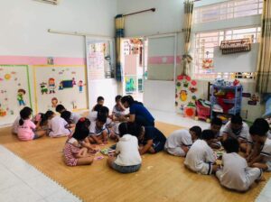 Trường có dịch vụ trông muộn cho Phụ huynh đi làm vè trễ. Các bé học từ thứ 2 đến thứ 7.